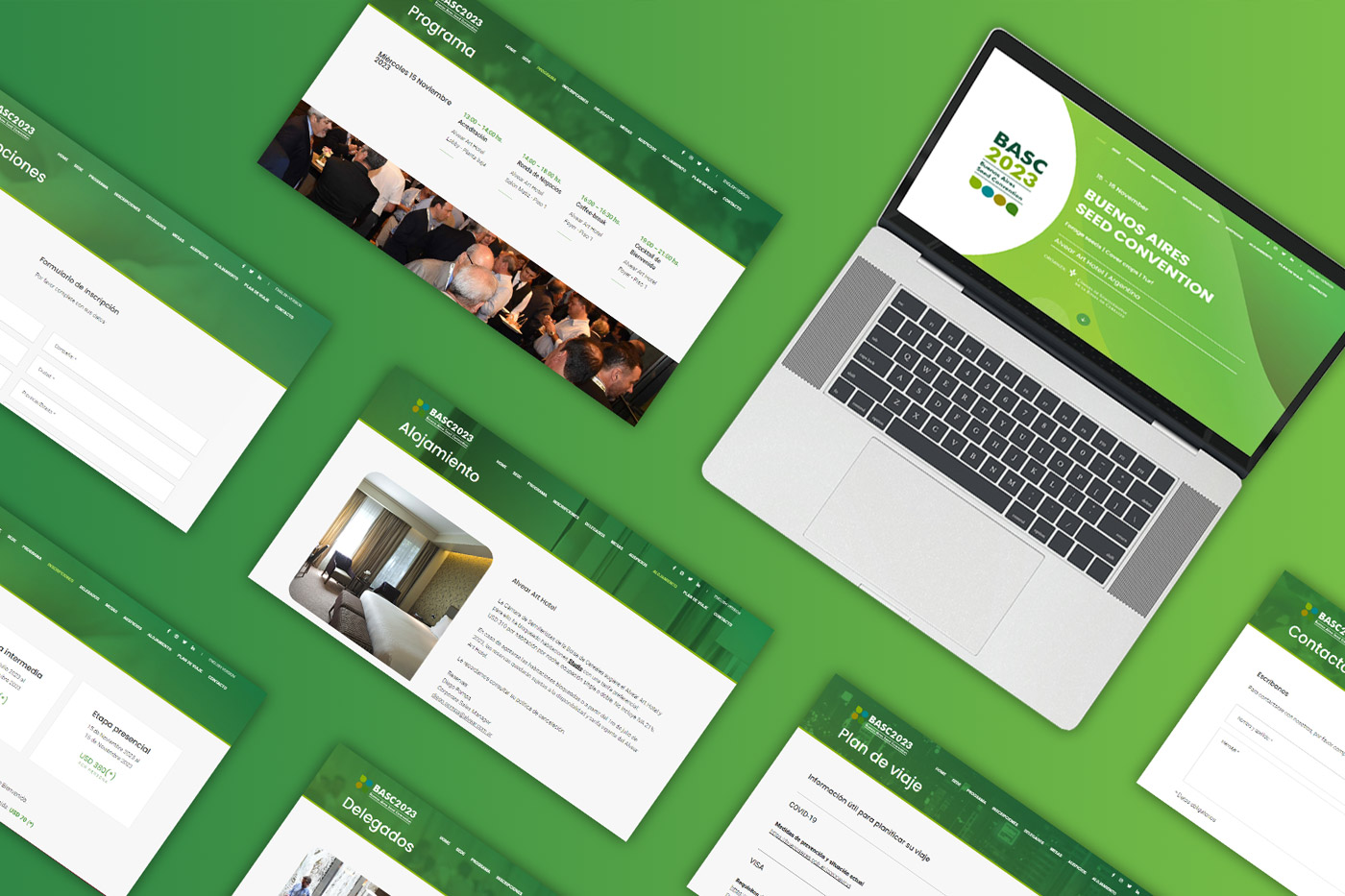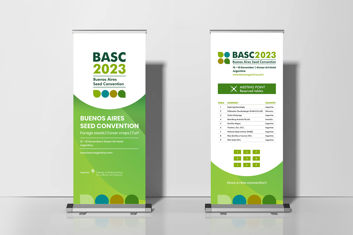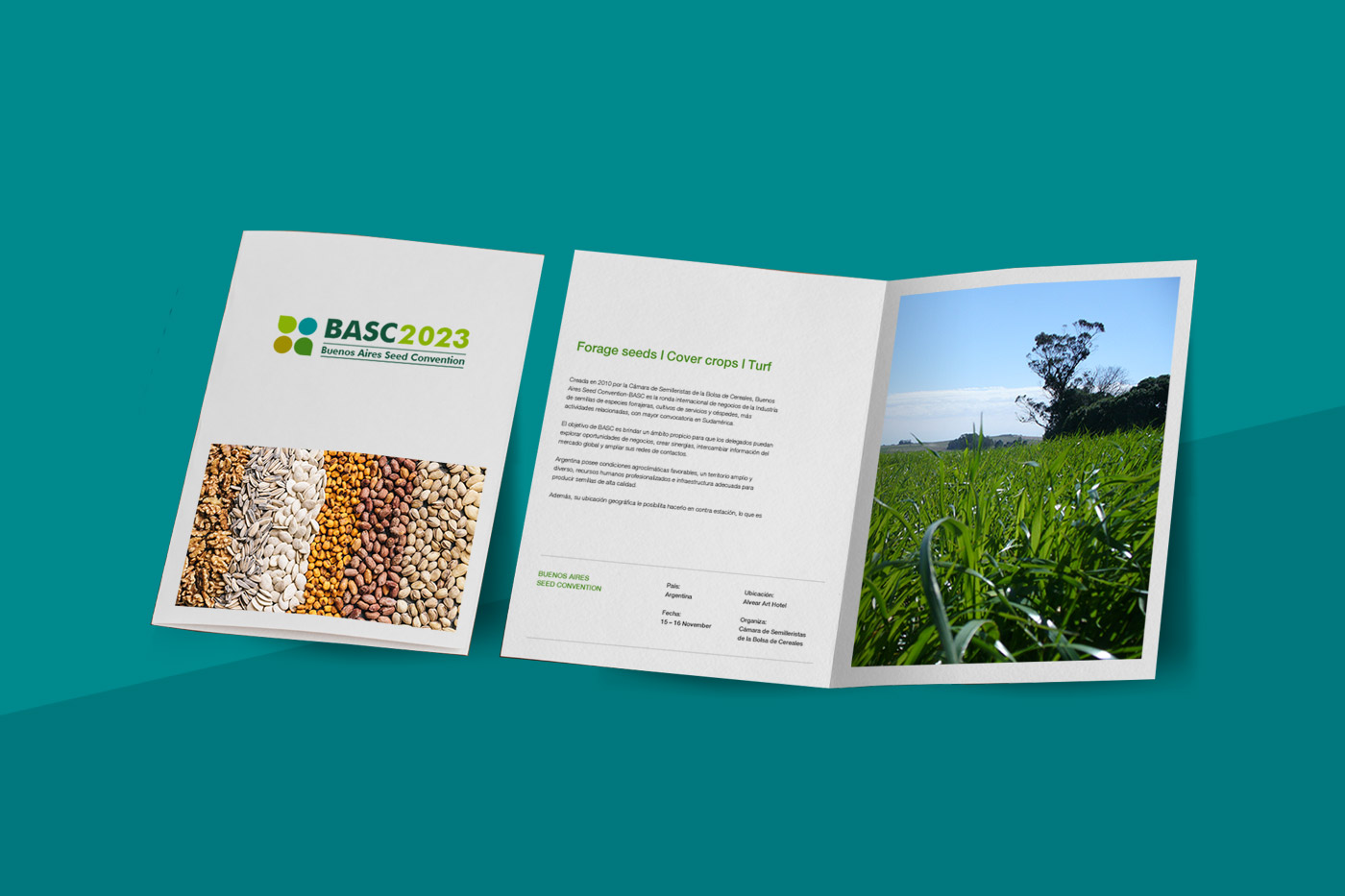 For several years, we have been collaborating with the Cámara de Semilleristas de la Bolsa de Cereales. In 2016, they commissioned us to redesign the BASC logo and create its visual identity, website, and promotional materials. Since then, we have annually brought to life the unique image of each Congress.